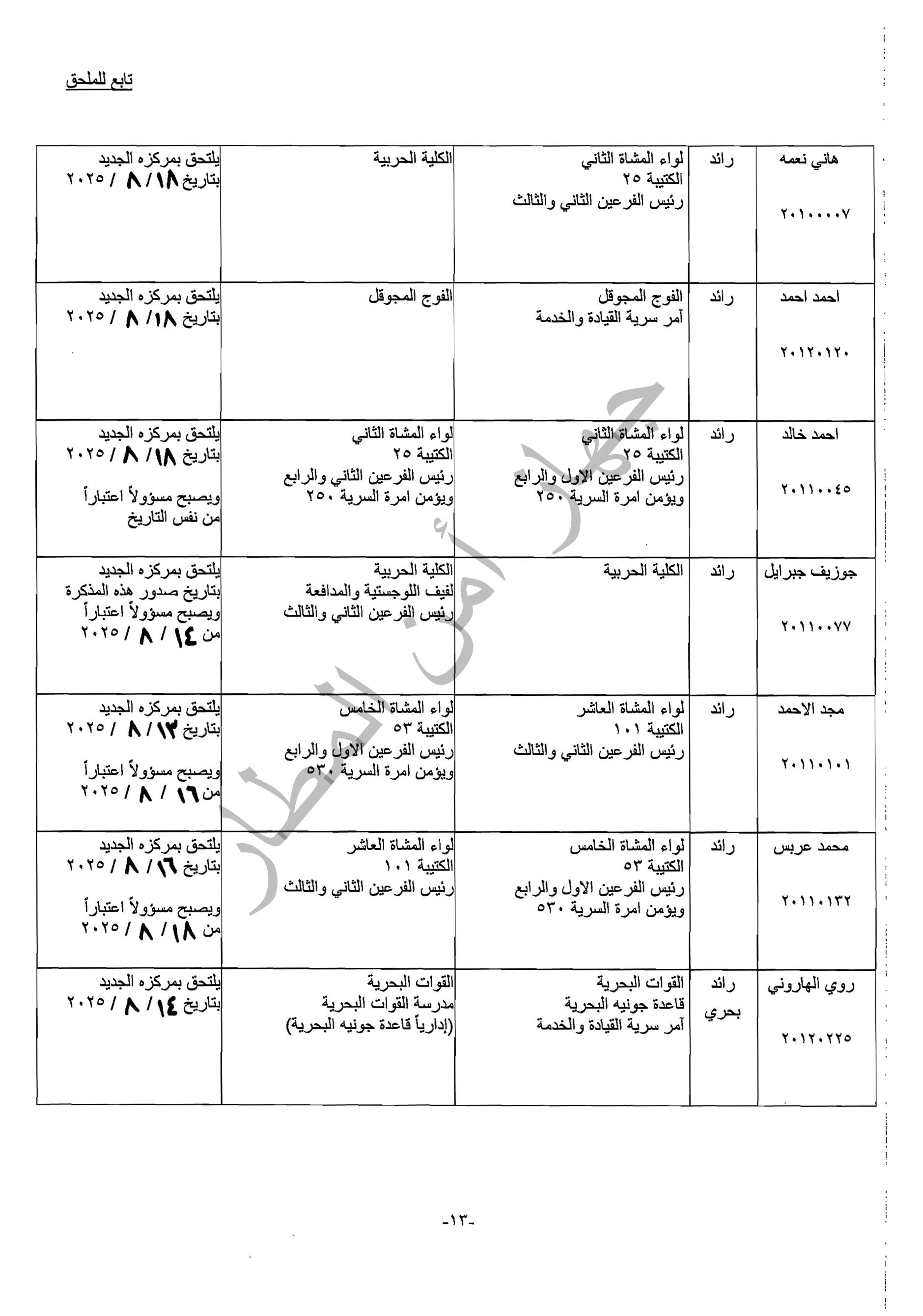 بالأسماء- مذكرة بتشكيلات ضباط في الجيش.. إليكم التفاصيل!