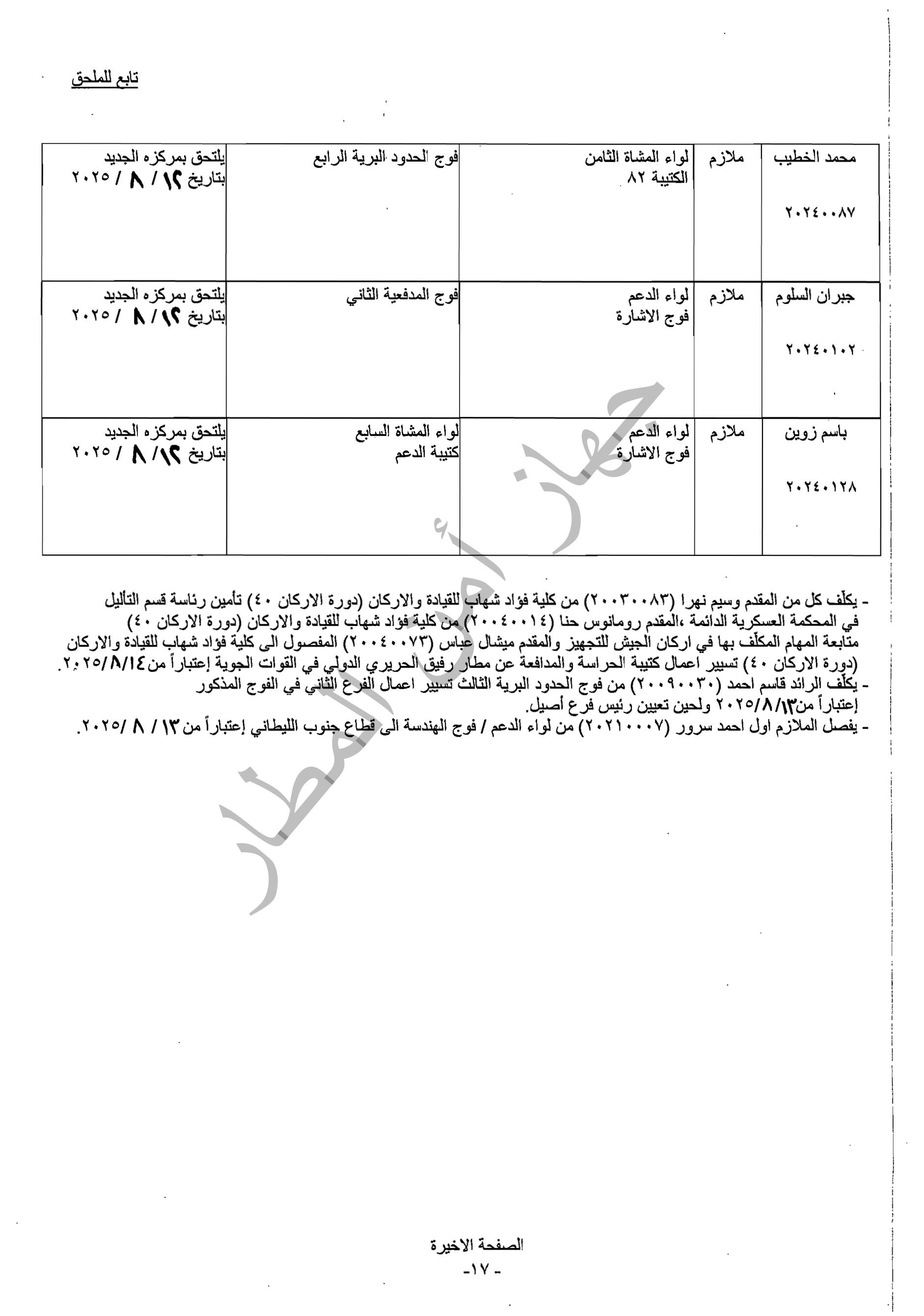 بالأسماء- مذكرة بتشكيلات ضباط في الجيش.. إليكم التفاصيل!