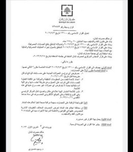 طالب مصرف لبنان، “المصارف بعدم فرض أي نوع من العمولات الجديدة على حسابات الودائع لم تكن مفروضة قبل تاريخ 31/10/2019”.