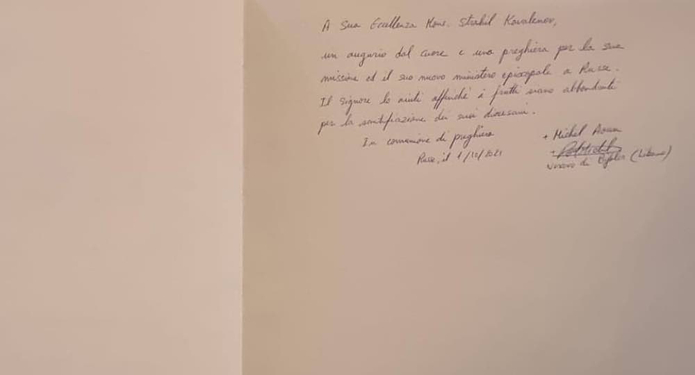 واصل راعي ابرشية جبيل المارونية  المطران ميشال عون زيارته الراعوية منتقلاً من بوخارست في رومانيا، الى مدينة Russe في بلغاريا، حيث التقى مطران الابرشية الجديد Mgr strahil kavalenov مهنئاً اياه بعد تعينه كراعٍ لابرشية Nicopoli ، وقد رافق سيادته اعضاء من المجلس الرعوي في رومانيا، ودوّن المطران عون كلمة على السجل الذهبي لأبرشية Nicopoli وابرز ما جاء فيها:” تهاني من القلب ودعاء بالصلاة من اجل الرسالة الاسقفية الجديدة الموكلة لسيادتكم في مدينة Russe. اسأل الله ان يساعدكم في المهمة الجديدة لتكون الثمار وافرة لابناء ابرشيتكم”