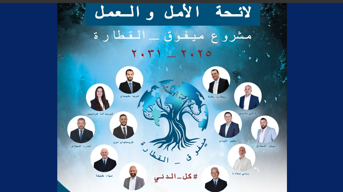 ينطلق اعضاء “لائحة الأمل والعمل”، التي تحمل شعار “مشروع ميفوق – القطّارة 2025 – 2031 #كل_الدني”.
