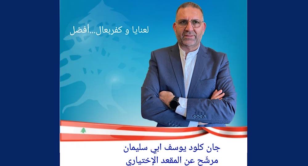 أعلن جان كلود يوسف أبي سليمان ترشحه عن المقعد الاختياري لبلدتي عنايا وكفربعال، مؤكدًا التزامه بخدمة أهالي بلدته بروح المحبة والتعاون.