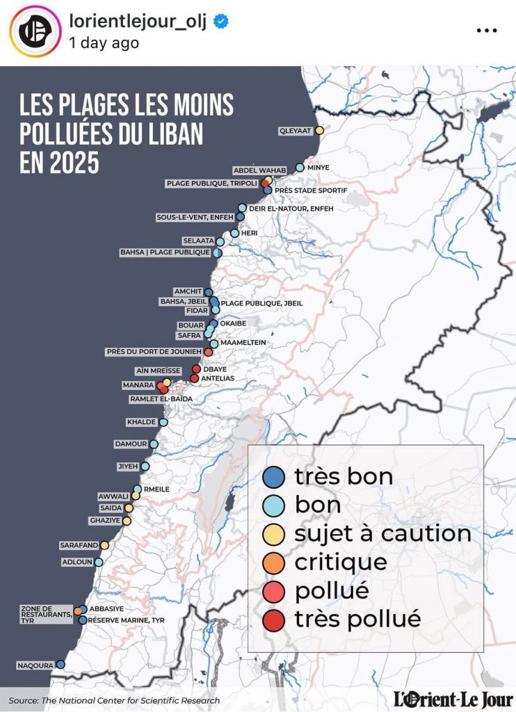 أعلن المجلس الوطني للبحوث العلمية نتائج المركز الوطني لعلوم البحار بخصوص المسوحات البحرية البكتيريولوجية ل 37 موقعا جغرافيا على طول الشاطئ اللبناني من عكار وصولا الى الناقورة.