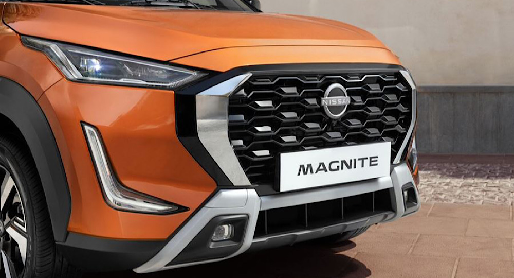 وتتميز “ماغنايت” بمقدمتها التي تترك انطباعًا قويًا من النظرة الأولى بفضل شبكها الأمامي الجريء ثنائي اللون بتصميم مميز على شكل خلية نحل، حيث تبرز هويتها من خلال مظهرها الجريء مع مصابيح أمامية آلية ثنائية الإسقاط بتقنية LED ومؤشرات انعطاف مصممة على شكل سيف ضوئي بتقنية LED أيضًا، بالإضافة إلى لوح انزلاقي عائم ثنائي اللون يُكمل تلك الإطلالة القوية.
