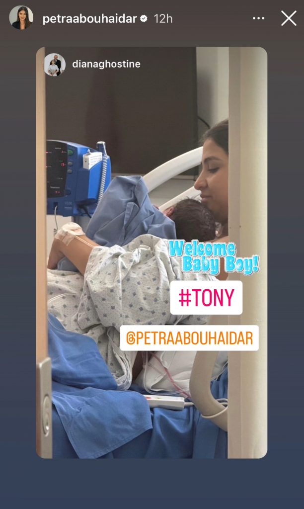 رزقت إعلامية ال LBCI بيترا أبو حيدر وزوجها إيلي حبيقة بمولودهما الأول، وأطلقا عليه اسم “طوني”.