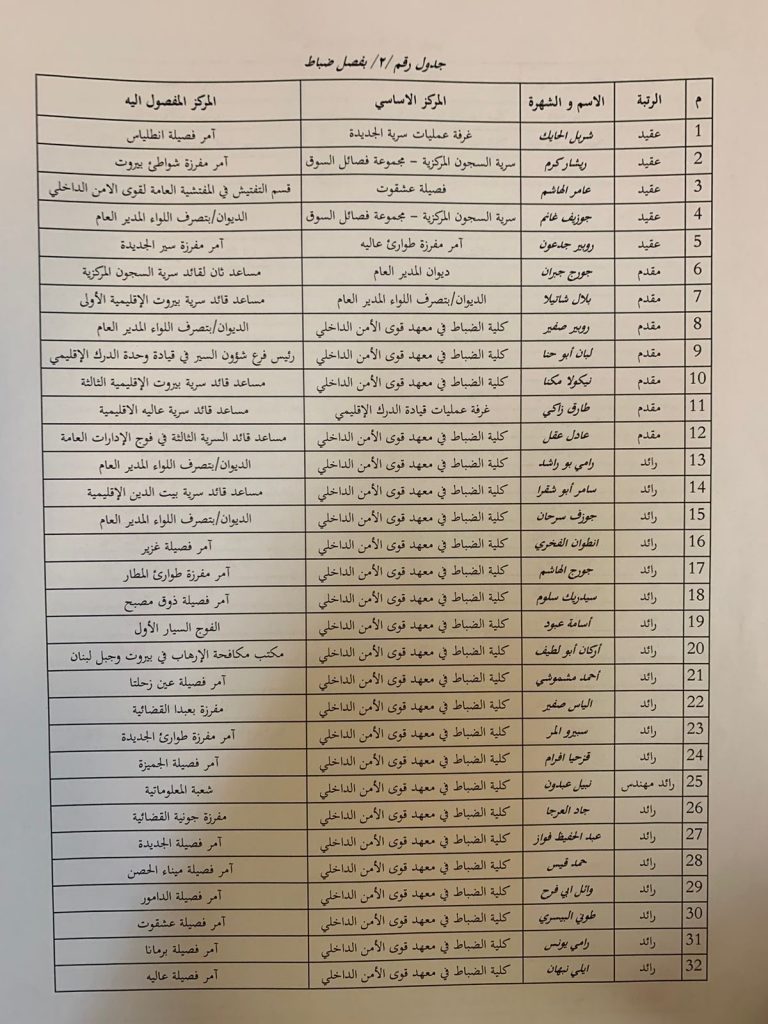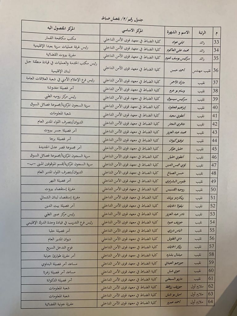 أبرز العناوينخاص-بالأسماء والتفاصيل: تشكيلات جديدة في قوى الأمن أمن وقضاءخاص-بالأسماء والتفاصيل: تشكيلات جديدة في قوى الأمن18:12 2025 ,August 2903641 أصدرت المديرية العامة لقوى الأمن الداخلي قراراً بتشكيلات جديدة شملت نقل وتعيين 64 ضابطاً في مراكز مختلفة. FacebookTwitterPinterestWhatsAppTelegram الخبر السابقبيان من “المالية” بشأن أعطال تفرض عملاً متقطعاً في بعض محتسبيات المناطقالخبر التاليبالصورة: ممثل لبناني شهير يسخر من أرتاغوس!- إعلان - - إعلان - - إعلانات - - إعلانات - الأكثر قراءةمأساة مؤلمة… ميشال جثّة داخل منزله! 11:38 2025 ,December 4 أوَّل معجزة تُسَجَّل بعد زيارة البابا ضريح مار شربل: رَنَّ هاتف الطبيب وصوتُ القديس يُعلِنُ الأعجوبة 15:24 2025 ,December 4 حادث مؤسف يطال النائب افرام قبيل زيارة الحبر الأعظم… فهل يشارك؟ 19:41 2025 ,November 29 جريمة مروّعة نفّذها سوريّان… ودعوات لضبط النفس 12:02 2025 ,December 4 المزيد- إعلانات - - إعلانات - - إعلان - - إعلان -