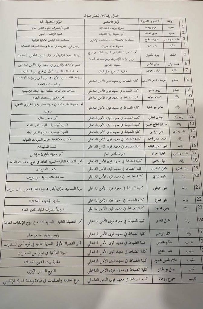 أبرز العناوينبالأسماء والمراكز...تشكيلات جديدة في قوى الأمن الداخلي أمن وقضاءبالأسماء والمراكز…تشكيلات جديدة في قوى الأمن الداخلي10:17 2025 ,September 1004655 أصدرت المديرية العامة لقوى الأمن الداخلي قراراً بتشكيلات جديدة شملت نقل وتعيين 57 ضابطاً في مراكز مختلفة FacebookTwitterPinterestWhatsAppTelegram الخبر السابقالرابطة المارونية تستنكر تهديد عبود: كان دائماً صوت لبنان الحرّالخبر التاليبمبادرة من افرام …افتتاح رسميّ حاشد لمرفأ جونية السياحيّ- إعلان - - إعلان - - إعلانات - - إعلانات - الأكثر قراءةحادث مؤسف يطال النائب افرام قبيل زيارة الحبر الأعظم… فهل يشارك؟ 19:41 2025 ,November 29 مأساة مؤلمة… ميشال جثّة داخل منزله! 11:38 2025 ,December 4 أوَّل معجزة تُسَجَّل بعد زيارة البابا ضريح مار شربل: رَنَّ هاتف الطبيب وصوتُ القديس يُعلِنُ الأعجوبة 15:24 2025 ,December 4 إعلامي لبناني شهير يحتفل بخطوبته.. شاهدوا الصور والفيديو 10:31 2025 ,November 29 المزيد- إعلانات - - إعلانات - - إعلان - - إعلان -
