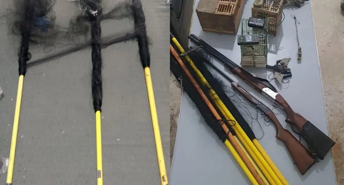 وذلك لقيامهما بصيد الطيور، ولاسيّما باستخدام الشباك، التي تُعد من أكثر وسائل الصيد خطورة، نظرًا لما تُلحقه من مجازر بالطيور وأضرار جسيمة بالتوازن البيئي. بتفتيشهما، تم ضبط بحوزتهما ما يلي: