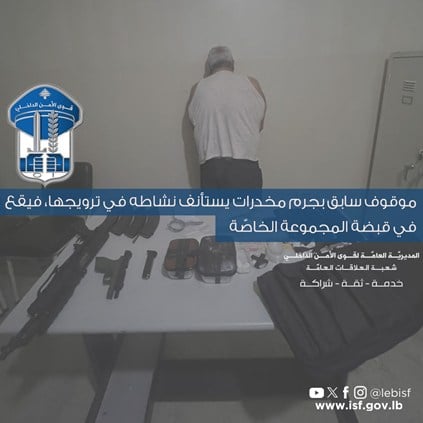 بتاريخ 20-11-2025، ونتيجة المتابعة وأعمال الرصد والتعقّب، قامت قوّة من المجموعة بمداهمة منزله في محلّة ضهور بياقوت، وجرى توقيفه بداخله.