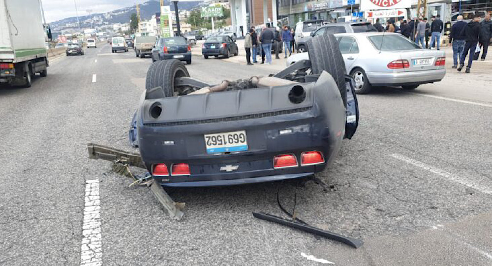 وقوع حادث مروع على المسلك الشرقي لاوتوستراد الصفرا حيث اصطدمت سيارة مسرعة بشاحنة ما ادى الى انقلابها.
