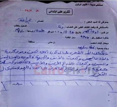 وأظهر التقرير الطبي، وفق وسائل إعلام محلية، أن الزوجة تعرضت لسحل واعتداء بالضرب تسبب في إصابات متعددة بالأنف والجبهة اليسرى والذراع والعين اليسرى، واشتراط عرضها على أخصائي رمد.