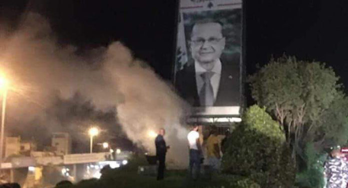 حاولت مجموعة من الشبان احراق صورة الرئيس ميشال عون المرفوعة عند مدخل عمشيت، و على الفور حضرت الى المكان عناصر من القوى الأمنية التي منعتهم و ابعدتهم عن المكان فيما اشتعلت النيران في الأعشاب المحيطة بالمكان.