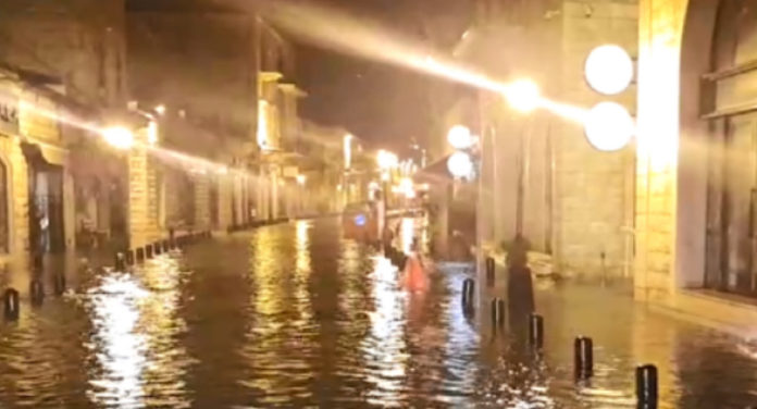 وليل أمس، ادت غزارة المياة المتساقطة في محافظة كسروان الى اغراق اسواق منطقة جونية بالمياه.