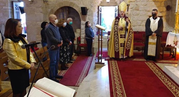 ثم تقبل عون التهاني بالعيد من المشاركين في القداس في صالون الرعية.