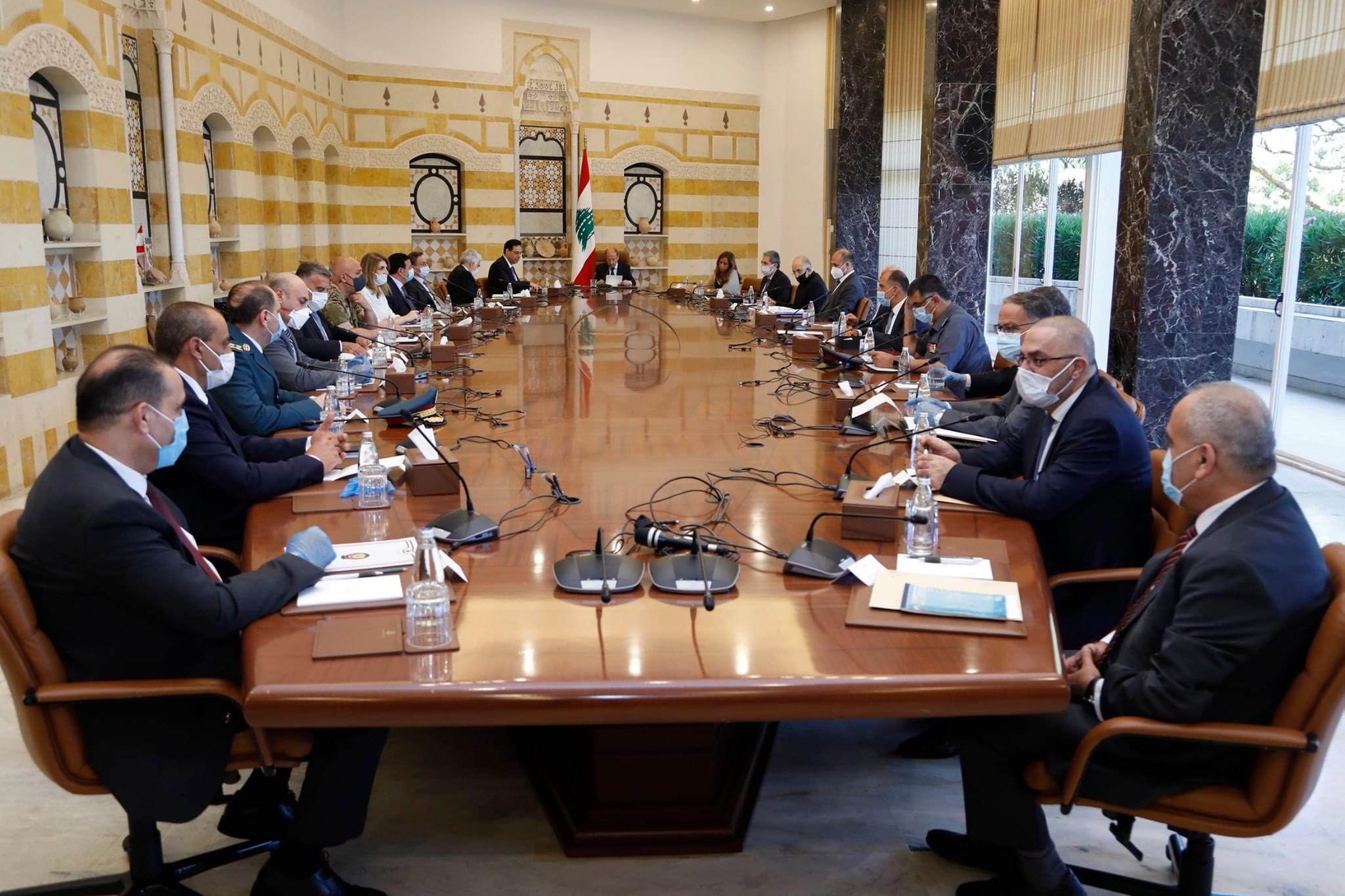 “إستهل فخامة الرئيس الاجتماع، بعرض موجز عن التدابير والإجراءات التي اتُخذت منذ اعلان تمديد التعبئة العامة بتاريخ 25/5/2020 في إطار الوقاية من فيروس كورونا، كما شدد على أهمية تقيد المواطنين بالاجراءات التي اصدرتها الحكومة”.