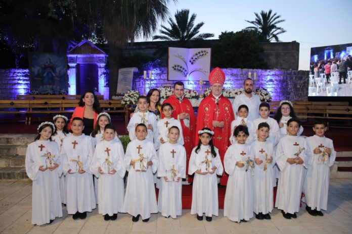 ترأس راعي أبرشية جبيل المارونية المطران ميشال عون وفي اول احتفال رعوي في زمن كورونا قداس المناولة الاولى في كنيسة السيدة في عمشيت.