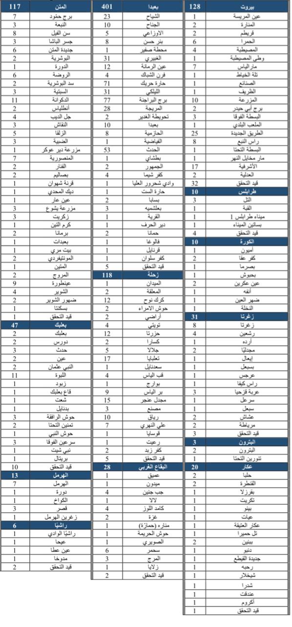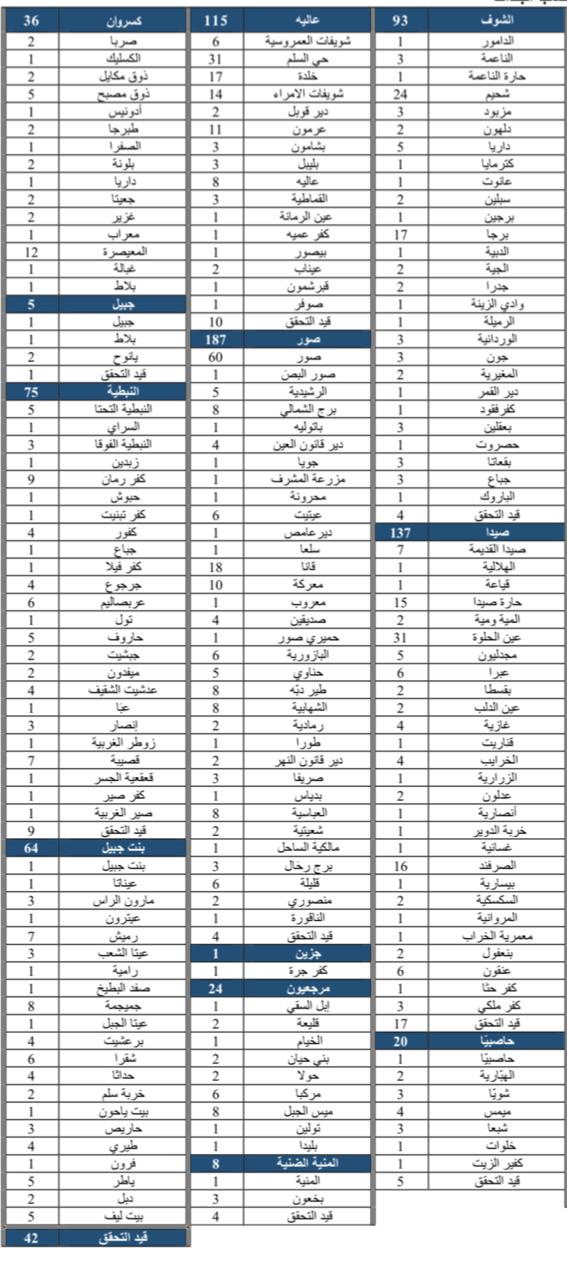 محلياتصحّةإصابات كورونا الجديدة... هكذا توزعت على المناطق صحّةإصابات كورونا الجديدة… هكذا توزعت على المناطق19:58 2021 ,February 150897 صدر جدول توزع إصابات كورونا الجديدة وفقاً للمناطق والقرى اللبنانية.وكانت وزارة الصحة العامة قد أعلنت تسجيل 1739 إصابة جديدة إضافة الى 44 حالة وفاة. FacebookTwitterPinterestWhatsAppTelegram الخبر السابقالخارجية الروسية: اتصال بين الحريري وبوغدانوف بحث في الازمة الاجتماعية والسياسية وتشديد على ضرورة التشكيل السريع للحكومةالخبر التاليلتحرير بعبدا من التيار الوطني….واولويات معراب وراثة عون- إعلان - - إعلان - ترك الردالتعليق:من فضلك ادخل تعليقك اسم:*من فضلك ادخل اسمك هنا البريد الإلكتروني:*لقد أدخلت عنوان بريد إلكتروني غير صحيح!الرجاء إدخال عنوان بريدك الإلكتروني هنا الموقع: احفظ اسمي والبريد الإلكتروني وموقع الويب في هذا المتصفح للمرة الأولى التي أعلق فيها. - إعلانات - - إعلانات - الأكثر قراءةالموت يُغيّب ممثلة شهيرة عن 45 عاماً! (صورة) 16:11 2025 ,December 15 بالصور – في أدونيس: اشتباك عنيف بين متحولين جنسياً .. وسقوط من المبنى! 17:53 2025 ,December 13 حزب يحسم تحالفه مع نائب في كسروان- جبيل 14:18 2025 ,December 12 خاص-سرقة منزل في عمشيت 11:37 2025 ,December 17 المزيد- إعلانات - - إعلانات - - إعلان - - إعلان -