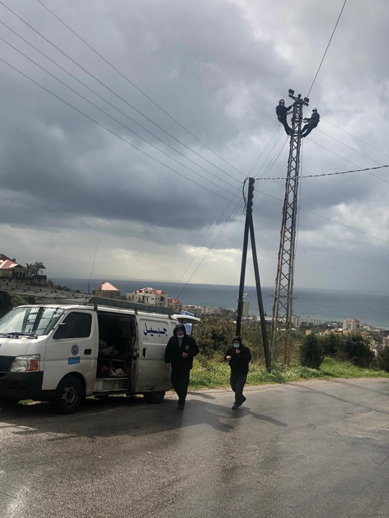 امتياز كهرباء جبيل وبيبلوس للطاقة المتطورة تعمل على اصلاح الاعطال تحت المطر