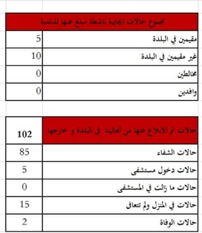 بلدياتبلدية المزاريب وعرستا تعلن عدد الحالات منذ انتشار فيروس كورونا بلدياتبلدية المزاريب وعرستا تعلن عدد الحالات منذ انتشار فيروس كورونا16:04 2021 ,March 20224 أعلنت بلدية المزاريب وعرستا انها منذ بداية انتشار فيروس كورونالغاية تاريخ ٢ أذار ٢٠٢١ سجلت١٠٢ حالة ايجابية تم الأبلاغ عنها ،٢ منهم حالات وفاة،٨٥ منهم شفاء تام ،و ١٥ شخصا لا تزال حالتهم ايجابيّة. FacebookTwitterPinterestWhatsAppTelegram الخبر السابقدهنت زوجتي عيني بتراب القبر وصليت…مار شربل يستقبل شهر أذار بعجيبة.الخبر التاليإليسا تنعي عمتها…كانوا مصريين يسجلوها كورونا بس ما قبلنا- إعلان - - إعلان - ترك الردالتعليق:من فضلك ادخل تعليقك اسم:*من فضلك ادخل اسمك هنا البريد الإلكتروني:*لقد أدخلت عنوان بريد إلكتروني غير صحيح!الرجاء إدخال عنوان بريدك الإلكتروني هنا الموقع: احفظ اسمي والبريد الإلكتروني وموقع الويب في هذا المتصفح للمرة الأولى التي أعلق فيها. - إعلانات - - إعلانات - الأكثر قراءةمأساة مؤلمة… ميشال جثّة داخل منزله! 11:38 2025 ,December 4 أوَّل معجزة تُسَجَّل بعد زيارة البابا ضريح مار شربل: رَنَّ هاتف الطبيب وصوتُ القديس يُعلِنُ الأعجوبة 15:24 2025 ,December 4 جريمة مروّعة نفّذها سوريّان… ودعوات لضبط النفس 12:02 2025 ,December 4 خاص-منشور للزميل عبدو متى يثير الجدل حول حضور سليم صفير لقاء الشبيبة في بكركي! 23:24 2025 ,December 1 المزيد- إعلانات - - إعلانات - - إعلان - - إعلان -