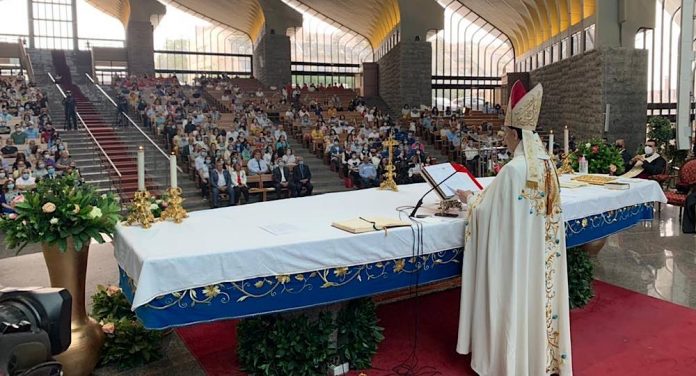 أضاف: “إن أمومة مريم في تدبير النعمة تدوم من دون توقف.، فبإنتقالها بالنفس والجسد إلى السماء، وتكليلها سلطانة السماء والأرض، تواصل دونما إنقطاع وظيفتها الخلاصية. وبتشفعها المتنوع تستمد لنا العطايا التي تؤمن خلاصنا الأبدي. وهكذا بمحبة الأمومة تعتني بإخوة إبنها المسافرين في بحر هذا العالم بين الأخطار والمحن، حتى وصولهم إلى الوطن السعيد (المرجع نفسه 62). إستنادا إلى هذه المبادئ اللاهوتية، تتضرع الكنيسة إلى الطوباوية مريم العذراء وتدعوها محامية ومعينة ومساعدة ووسيطة. هذه الألقاب لا تقلل من كرامة المسيح وقدرته، بوصفه الوسيط الأوحد، أو تزيد عليها. فكما أن جودة الله الواحد تفيض حقا على الخلائق بصورة متنوعة، كذلك وساطة الفادي الوحيدة لا تقصي بل تبعث تعاون الخلائق بطريقة مختلفة، نابعا من المصدر الواحد (المرجع نفسه 62). بما أن جودة الله تفيض على الجميع، لكي تظهر في أعمالهم ومواقفهم ومبادراتهم، نصلي من أجل أن ندرك جميعا هذه الجودة المجانية، ونبين إنعكاسها فينا، كما فعل الآباء والأجداد عبر العصور. فنحن شعب يملك طاقات الصمود للدفاع عن كرامته وحقه وهويته واستقلال وطنه وحدوده، رغم كل المصائب التي حلت به في السنوات الأخيرة. واليوم، على الرغم من الأزمة السياسية والضائقة الإقتصادية والمعيشية، ندعو الشعب للحفاظ على هذا الكيان اللبناني، ولإعادة تجميع طاقاته وقدراته وروحه المنتفضة، فلا يفقد الأمل بالمستقبل. الظلمة وراءنا والنور أمامنا. ومن شأن النور أن يمزق طبقات الظلام. فلن ندع لبنان يسقط”.