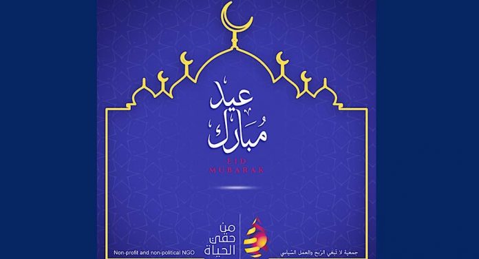 تتقدّم جمعية “من حقّي الحياة “، من الإخوة المسلمين في لبنان بأسمى آيات التبريك والتهنئة بمناسبة حلول عيد الفطر السعيد، راجية أن يحمل العيد معه كلّ الخير؛ فيحلّ السلام محلّ الحرب، والمودّة محلّ الجفاء، والاتفاق محلّ الخلاف، والعدل والإنصاف محلّ الظلم. وأن يعود بالازدهار على وطننا الحبيب لبنان، فيُضحي مُجدّداً منارة الشرق. وكل عام وإخوتنا المسلمين واللبنانيين بألف خير.