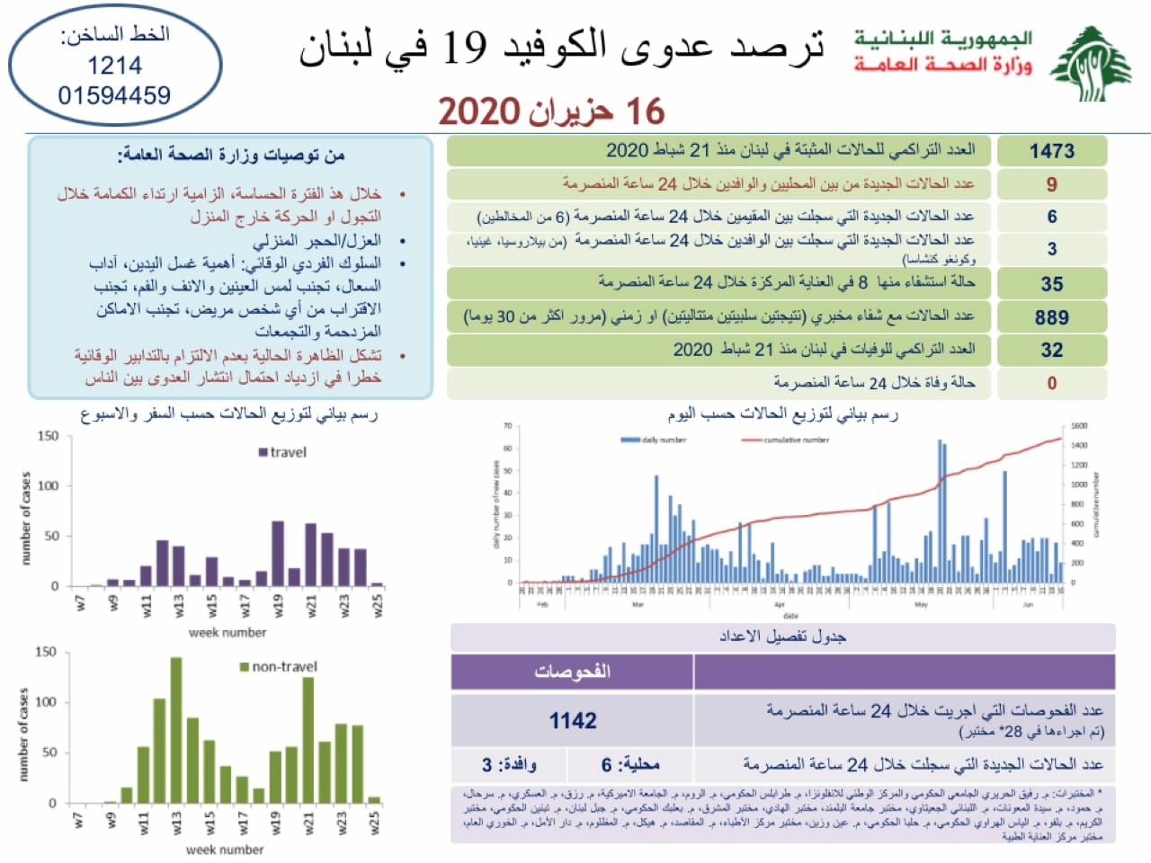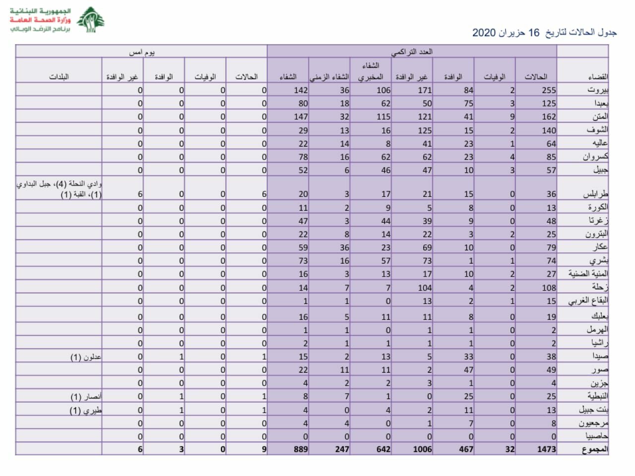 محلياتصحّةوزارة الصحة: 9 اصابات كورونا جديدة رفعت عدد الحالات المثبتة الى 1473 صحّةوزارة الصحة: 9 اصابات كورونا جديدة رفعت عدد الحالات المثبتة الى 147316:01 2020 ,June 160361 سجلت وزارة الصحة العامة 9 اصابات كورونا جديدة رفعت العدد التراكمي الى 1473 حالات. FacebookTwitterPinterestWhatsAppTelegram الخبر السابقندوة رقمية لمركز التراث في LAU : حرارة الحضور عصب العروضالخبر التاليالكتائب: لعدم التمادي في المنطق المكرس لمفهوم الدولة البولي- إعلان - - إعلان - ترك الردالتعليق:من فضلك ادخل تعليقك اسم:*من فضلك ادخل اسمك هنا البريد الإلكتروني:*لقد أدخلت عنوان بريد إلكتروني غير صحيح!الرجاء إدخال عنوان بريدك الإلكتروني هنا الموقع: احفظ اسمي والبريد الإلكتروني وموقع الويب في هذا المتصفح للمرة الأولى التي أعلق فيها. - إعلانات - - إعلانات - الأكثر قراءةمأساة مؤلمة… ميشال جثّة داخل منزله! 11:38 2025 ,December 4 أوَّل معجزة تُسَجَّل بعد زيارة البابا ضريح مار شربل: رَنَّ هاتف الطبيب وصوتُ القديس يُعلِنُ الأعجوبة 15:24 2025 ,December 4 حادث مؤسف يطال النائب افرام قبيل زيارة الحبر الأعظم… فهل يشارك؟ 19:41 2025 ,November 29 جريمة مروّعة نفّذها سوريّان… ودعوات لضبط النفس 12:02 2025 ,December 4 المزيد- إعلانات - - إعلانات - - إعلان - - إعلان -