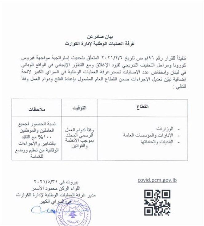 محلياتقرار جديد بتعديل إجراءات كورونا محلياتقرار جديد بتعديل إجراءات كورونا16:50 2021 ,May 310759 صدر عن غرفة العمليات الوطنية لإدارة الكوارث، قرار بتحديث إستراتيجية مواجهة فيروس كورونا وتعديل الإجراءات ضمن القطاع العام المشمول بإعادة الفتح ودوام العمل. FacebookTwitterPinterestWhatsAppTelegram الخبر السابقسفير تونس ونقيب صحافييها في نقابة المحررينالخبر التاليمِن على درّاجته..جورج بوعبدو يطلق “فيكي” مستخدماً تقنيّة “اللايف”- إعلان - - إعلان - ترك الردالتعليق:من فضلك ادخل تعليقك اسم:*من فضلك ادخل اسمك هنا البريد الإلكتروني:*لقد أدخلت عنوان بريد إلكتروني غير صحيح!الرجاء إدخال عنوان بريدك الإلكتروني هنا الموقع: احفظ اسمي والبريد الإلكتروني وموقع الويب في هذا المتصفح للمرة الأولى التي أعلق فيها. - إعلانات - - إعلانات - الأكثر قراءةمأساة مؤلمة… ميشال جثّة داخل منزله! 11:38 2025 ,December 4 أوَّل معجزة تُسَجَّل بعد زيارة البابا ضريح مار شربل: رَنَّ هاتف الطبيب وصوتُ القديس يُعلِنُ الأعجوبة 15:24 2025 ,December 4 حادث مؤسف يطال النائب افرام قبيل زيارة الحبر الأعظم… فهل يشارك؟ 19:41 2025 ,November 29 جريمة مروّعة نفّذها سوريّان… ودعوات لضبط النفس 12:02 2025 ,December 4 المزيد- إعلانات - - إعلانات - - إعلان - - إعلان -
