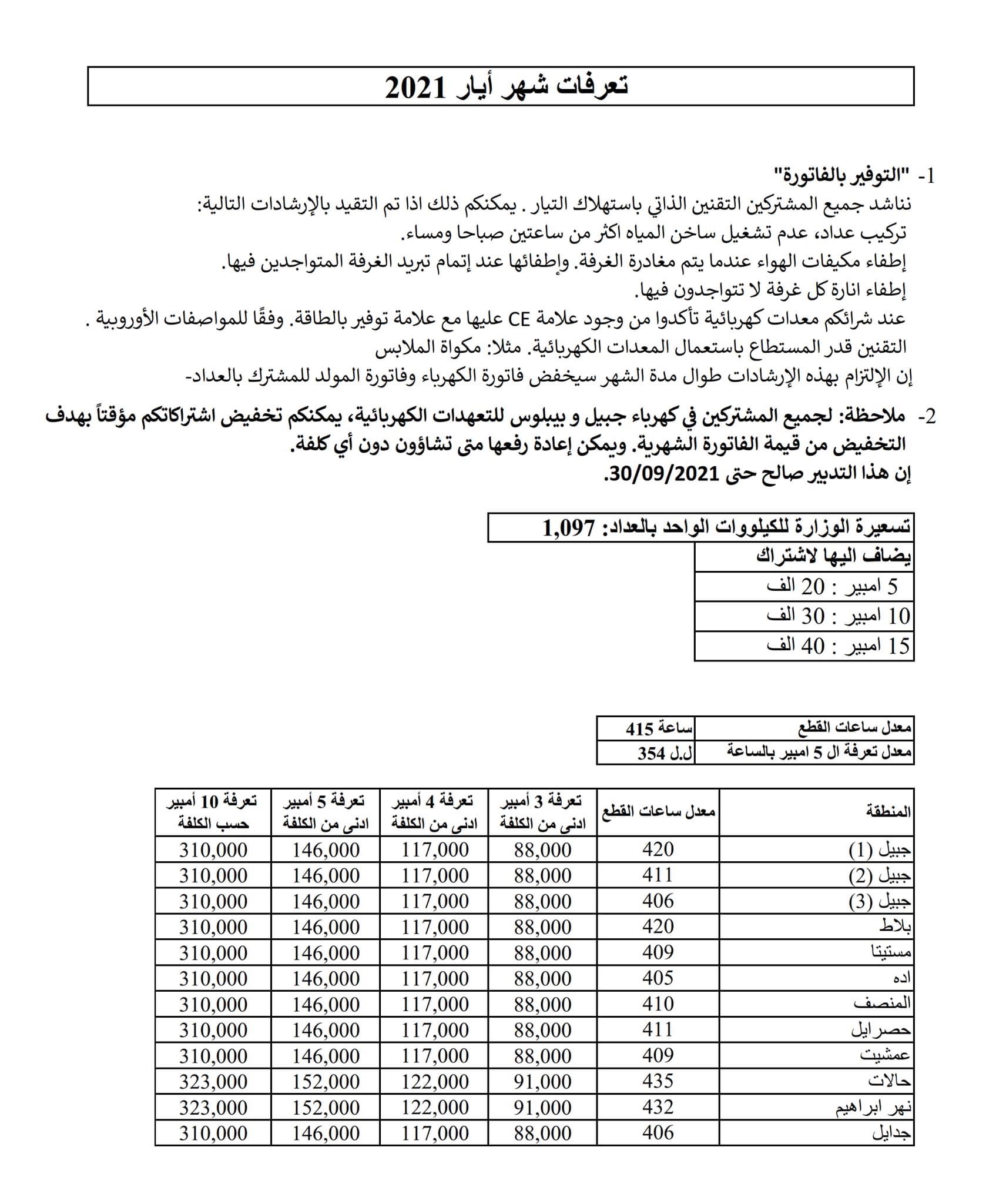 ففي الأوضاع الرديئة التي تعصف في لبنان، وبغية الوقوف إلى جانب أهالي المنطقة، إتخذت الشركة قراراً بجباية مستحقّاتها للمولّدات الكهربائية من المواطنين بسعر التّكلفة دون أي أرباح إضافية، كما سمحت للرّاغبين بتخفيض إشتراكاتهم إلى ٣ أو ٤ أمبير دون أي تكلفة إضافية. يُذكر أن هذا التّعميم كان صالحاً لغاية آخر شهر أيار الفائت.