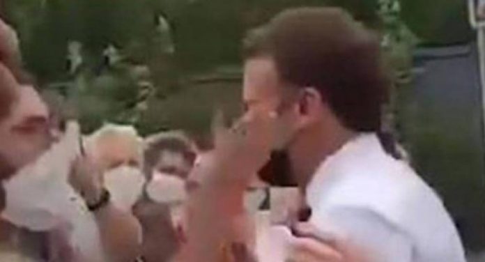 وتظهر المشاهد ماكرون خلال زيارته لمدينة تان ليرميتاج في مقاطعة دروم، يقترب من مجموعة من الأشخاص احتشدوا وراء حواجز.