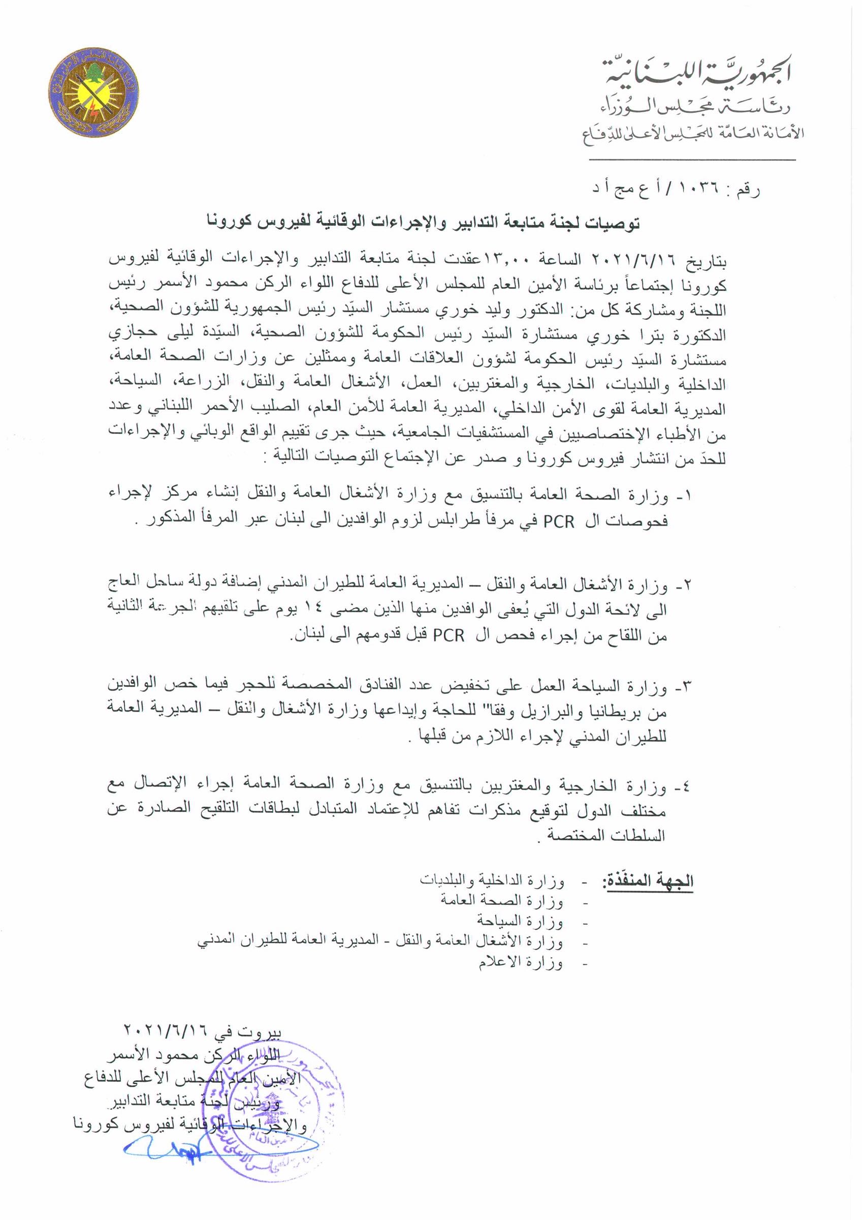 محلياتتوصيات جديدة للجنة كورونا.. ماذا في تفاصيلها؟ محلياتتوصيات جديدة للجنة كورونا.. ماذا في تفاصيلها؟16:44 2021 ,June 160368 صدر عن لجنة متابعة التدابير والاجراءات الوقائية لفيروس كورونا سلسلة توصيات جديدة. FacebookTwitterPinterestWhatsAppTelegram الخبر السابقابي رميا: قانونان بغاية الاهمية درسناهما في اللجان المشتركةالخبر التاليبالتفاصيل…بيان لمصرف لبنان عن ترشيد الدعم والبنزين والادوية والقطاع الطبي- إعلان - - إعلان - ترك الردالتعليق:من فضلك ادخل تعليقك اسم:*من فضلك ادخل اسمك هنا البريد الإلكتروني:*لقد أدخلت عنوان بريد إلكتروني غير صحيح!الرجاء إدخال عنوان بريدك الإلكتروني هنا الموقع: احفظ اسمي والبريد الإلكتروني وموقع الويب في هذا المتصفح للمرة الأولى التي أعلق فيها. - إعلانات - - إعلانات - الأكثر قراءةمأساة مؤلمة… ميشال جثّة داخل منزله! 11:38 2025 ,December 4 أوَّل معجزة تُسَجَّل بعد زيارة البابا ضريح مار شربل: رَنَّ هاتف الطبيب وصوتُ القديس يُعلِنُ الأعجوبة 15:24 2025 ,December 4 حادث مؤسف يطال النائب افرام قبيل زيارة الحبر الأعظم… فهل يشارك؟ 19:41 2025 ,November 29 جريمة مروّعة نفّذها سوريّان… ودعوات لضبط النفس 12:02 2025 ,December 4 المزيد- إعلانات - - إعلانات - - إعلان - - إعلان -