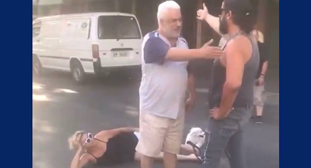 سيدة تقطع السير بجسدها وتفترش الأرض وسط الطريق! pic.twitter.com/B8pJkvRwJH