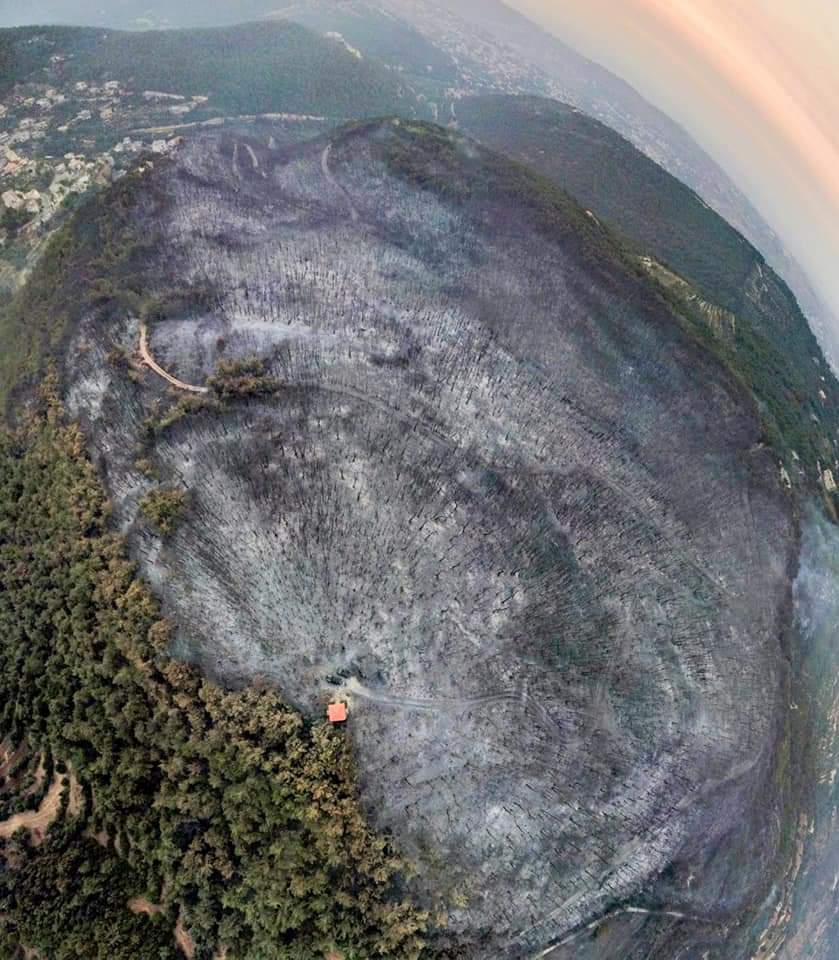 فقد وثّقت كاميرا المصوّر إدغار حبيش مدى تضرر المساحات الخضراء في المنطقة، حيث يتبيّن أن أكثر من 30 كم مربع تحوّل إلى رماد.