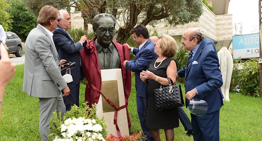 بعد القداس والتعازي توجه الحضور إلى حديقة مجاورة للكنيسة، حيث ازاح النائب فريد هيكل الخازن، ونقيب محرري الصحافة اللبنانية جوزف القصيفي وزوجة الراحل السيدة نوال كميد السّتارة عن نصب يمثله من توقيع الفنان رودي رحمه.