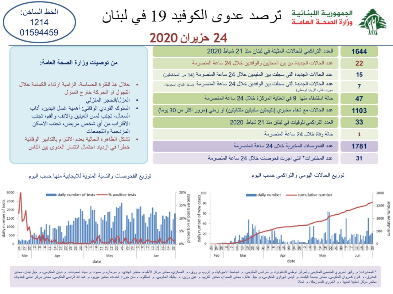 محلياتصحّةوزارة الصحة: تسجيل 22 اصابة جديدة بكورونا وزارة الصحة: تسجيل 22 اصابة جديدة بكورونا16:29 2020 ,June 240415 اعلنت وزارة الصحة العامة تسجيل ٢٢ اصابة كورونا جديدة رفعت العدد التراكمي للحالات المثبتة الى ١٦٤٤. FacebookTwitterPinterestWhatsAppTelegram الخبر السابقبو عبدو يدعم الشايب وحلّاق لإيصالهما الى العالميةالخبر التاليالامن العام: الطلبات التأشيرات حصرا في دائرة العلاقات العامة مقابل بدل خدمات- إعلان - - إعلان - ترك الردالتعليق:من فضلك ادخل تعليقك اسم:*من فضلك ادخل اسمك هنا البريد الإلكتروني:*لقد أدخلت عنوان بريد إلكتروني غير صحيح!الرجاء إدخال عنوان بريدك الإلكتروني هنا الموقع: احفظ اسمي والبريد الإلكتروني وموقع الويب في هذا المتصفح للمرة الأولى التي أعلق فيها. - إعلانات - - إعلانات - الأكثر قراءةحادث مؤسف يطال النائب افرام قبيل زيارة الحبر الأعظم… فهل يشارك؟ 19:41 2025 ,November 29 أوَّل معجزة تُسَجَّل بعد زيارة البابا ضريح مار شربل: رَنَّ هاتف الطبيب وصوتُ القديس يُعلِنُ الأعجوبة 15:24 2025 ,December 4 مأساة مؤلمة… ميشال جثّة داخل منزله! 11:38 2025 ,December 4 إعلامي لبناني شهير يحتفل بخطوبته.. شاهدوا الصور والفيديو 10:31 2025 ,November 29 المزيد- إعلانات - - إعلانات - - إعلان - - إعلان -