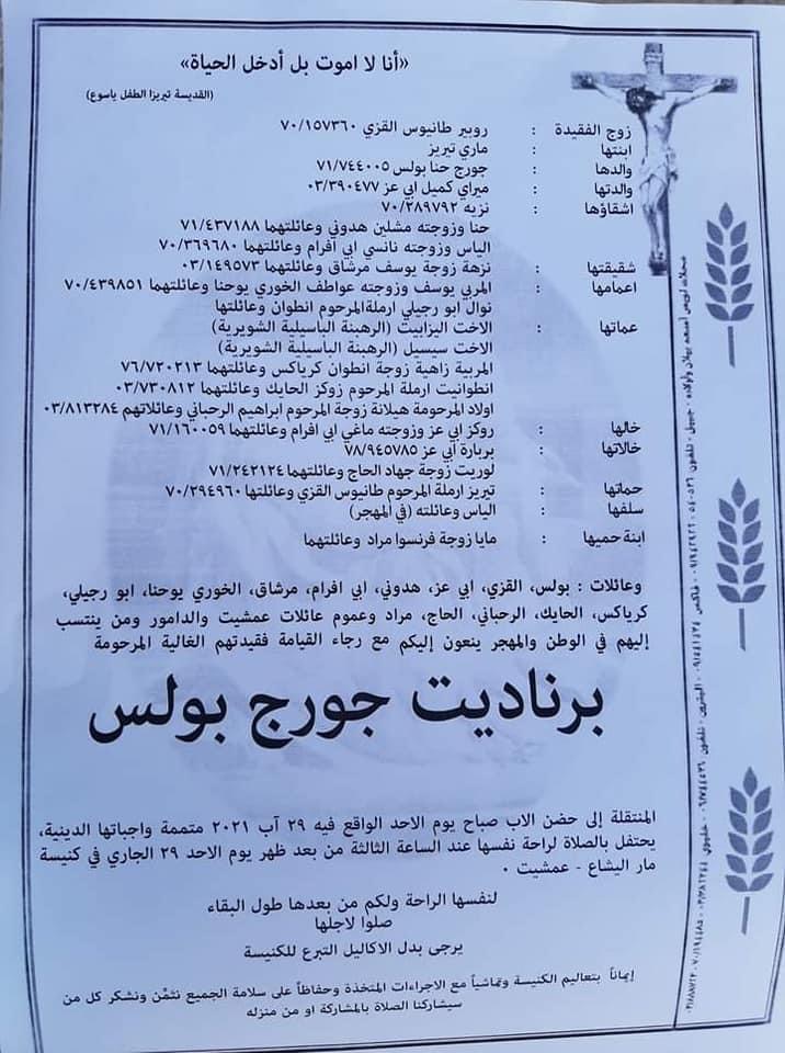 أبرز العناوينعاجل-خاص : وفاة موظّفة في بلدية عمشيت بكورونا . خاص الموقععاجل-خاص : وفاة موظّفة في بلدية عمشيت بكورونا .10:15 2021 ,August 2902303 علم موقع “قضاء جبيل” أن الموظفة في بلدية عمشيت برنادت جورج بولس مواليد ١٩٨٩، توفيّت جراء مضاعفات إصابتها بوباء كورونا. FacebookTwitterPinterestWhatsAppTelegram الخبر السابقليال الاختيار برفقة والدتها ووالدها…وهذا ما قالته لأفراد عائلتهاالخبر التاليالفنانة مي مطر : أغلبية أبناء عكار في الجيش اللبناني لحماية الوطن فماذا قدم الوطن لهم؟- إعلان - - إعلان - ترك الردالتعليق:من فضلك ادخل تعليقك اسم:*من فضلك ادخل اسمك هنا البريد الإلكتروني:*لقد أدخلت عنوان بريد إلكتروني غير صحيح!الرجاء إدخال عنوان بريدك الإلكتروني هنا الموقع: احفظ اسمي والبريد الإلكتروني وموقع الويب في هذا المتصفح للمرة الأولى التي أعلق فيها. - إعلانات - - إعلانات - الأكثر قراءةمأساة مؤلمة… ميشال جثّة داخل منزله! 11:38 2025 ,December 4 أوَّل معجزة تُسَجَّل بعد زيارة البابا ضريح مار شربل: رَنَّ هاتف الطبيب وصوتُ القديس يُعلِنُ الأعجوبة 15:24 2025 ,December 4 حادث مؤسف يطال النائب افرام قبيل زيارة الحبر الأعظم… فهل يشارك؟ 19:41 2025 ,November 29 جريمة مروّعة نفّذها سوريّان… ودعوات لضبط النفس 12:02 2025 ,December 4 المزيد- إعلانات - - إعلانات - - إعلان - - إعلان -