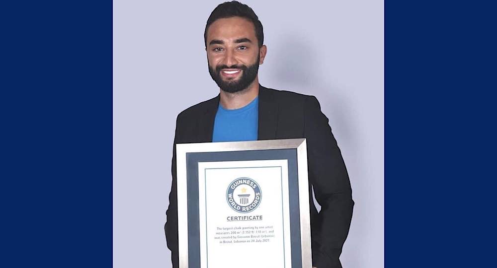 استلم الرسام اللبناني ابن بلدة غلبون في قضاء جبيل جيوفاني باسيل شهادة رسمية من موسوعة غينيس وذلك بعد ان قام برسم اكبر علم لبناني بالطبشور، بمساحة ٢٠٠ متر مربع، (بطول ٢٠ متر وعرض ١٠ أمتار) في وسط بيروت مقابل جامع الامين حيث استعمل باسيل ٤ الاف طبشورة بألوان العلم اللبناني.