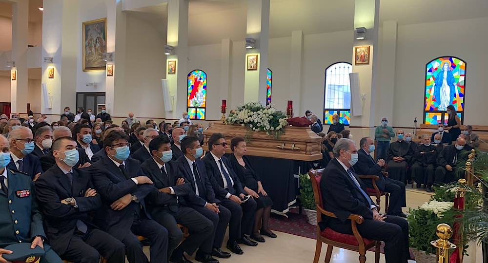 وتابع “إرتبط في سرّ الزواج المقدّس بشريكة حياة فاضلة، هي السيّدة ماري عبدو أبي نجم، إبنة البيت والعائلة الكريمين. عاشا معًا حياةً زوجيّةً سعيدة، باركها الله بثمرة الأبناء الأربعة والإبنتين. فأمّنا لهم أحسن تربية على القيم الروحيّة والأخلاقيّة والإجتماعيّة والوطنيّة، مع الإختصاص الجامعيّ الرفيع. وسُرّا بهم يشقّون طريقهم في الحياة، ويؤسّسون عائلات رضية. ووجد بهجته في الأحفاد الذين غمرهم بالحبّ والحنان. وكم كانت فرحته كبيرة عند التقاء العائلة بكاملها في كلّ يوم أحد لتناول طعام الغداء معًا، ما عدا في هذا الأحد حيث اللقمة مغموسة بالدموع. اما هو فيجلس الى مائدة عرس الحمل”.