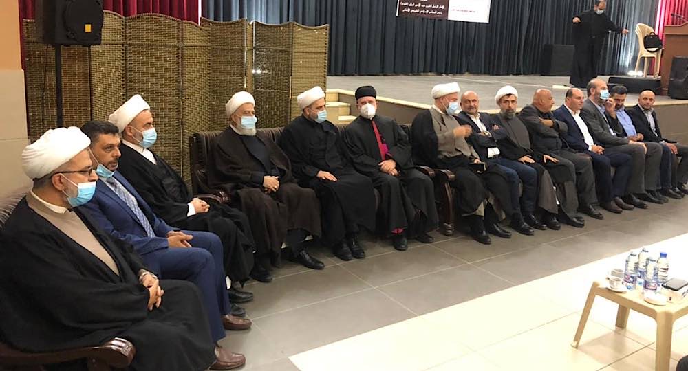راعي ابرشية جبيل المارونية المطران ميشال عون وامين سر المطرانية الخوري جوزف زيادة ،راعي ابرشية جونية المارونية المطران انطوان نبيل العنداري امام جبيل الشيخ غسان اللقيس وعدد من مشايخ الطائفة