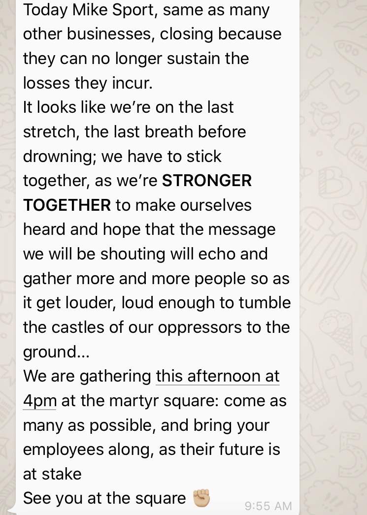 إقتصادشركة Mike Sport تغلق أبوابها: لم نعد قادرين على تكبّد الخسائر إقتصادشركة Mike Sport تغلق أبوابها: لم نعد قادرين على تكبّد الخسائر12:47 2020 ,July 20395 أعلنت شركة Mike Sport عن اغلاق أبوابها بسبب عدم قدرتها على تحمّل الخسائر التي تتكبدها بسبب الأزمة الاقتصادية.في هذا الاطار، دعت الشركة الى تجمّع اليوم الخميس عند الساعة الرابعة بعد الظهر في ساحة الشهداء. FacebookTwitterPinterestWhatsAppTelegram الخبر السابقكم بلغ سعر صرف الدولار اليوم؟الخبر التاليشركة Brands For Less تُقفل أبوابها في لبنان!- إعلان - - إعلان - ترك الردالتعليق:من فضلك ادخل تعليقك اسم:*من فضلك ادخل اسمك هنا البريد الإلكتروني:*لقد أدخلت عنوان بريد إلكتروني غير صحيح!الرجاء إدخال عنوان بريدك الإلكتروني هنا الموقع: احفظ اسمي والبريد الإلكتروني وموقع الويب في هذا المتصفح للمرة الأولى التي أعلق فيها. - إعلانات - - إعلانات - الأكثر قراءةمأساة مؤلمة… ميشال جثّة داخل منزله! 11:38 2025 ,December 4 أوَّل معجزة تُسَجَّل بعد زيارة البابا ضريح مار شربل: رَنَّ هاتف الطبيب وصوتُ القديس يُعلِنُ الأعجوبة 15:24 2025 ,December 4 حادث مؤسف يطال النائب افرام قبيل زيارة الحبر الأعظم… فهل يشارك؟ 19:41 2025 ,November 29 جريمة مروّعة نفّذها سوريّان… ودعوات لضبط النفس 12:02 2025 ,December 4 المزيد- إعلانات - - إعلانات - - إعلان - - إعلان -