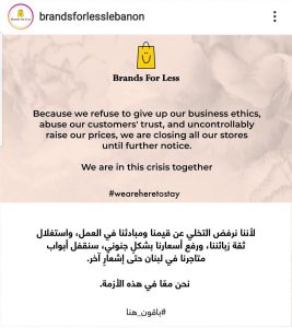 وبعد خبر إقفال شركة Mike Sport كافة فروعها في لبنان حتى إشعار آخر، أعلنت شركة Brands For Less أيضاً عن إغلاق فروعها في لبنان.