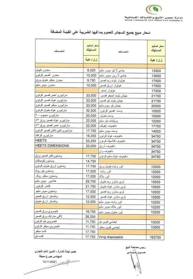 أبرز العناوينبالصورة-أسعار جديدة لـ "المعسّل" والدخان. إقتصادبالصورة-أسعار جديدة لـ “المعسّل” والدخان.13:56 2021 ,November 160982 أصدرت إدارة حصر التبغ والتنباك اللبنانية لائحة جديدة بأسعار الدخان على أنواعه و “المعسّل” الخاص بالنرجيلة. كلمات مفتاحيةاقتصادالدخانالمعسل FacebookTwitterPinterestWhatsAppTelegram الخبر السابقبالتفاصيل…دعوة عامة بإسم أهالي شهداء فوج الإطفاءالخبر التاليبالصور – هبة من التشيك إلى الجيش اللبناني- إعلان - - إعلان - مقالات ذات صلة أبرز العناوينعاجل-افتتاحية مرتفعة لسعر صرف الدولار! 07:54 2022 ,April 13 أبرز العناوينكيف افتتح سعر صرف الدولار في السوق السوداء صباح اليوم؟ 09:10 2022 ,April 11 أبرز العناوينهذا ما سجّله دولار السوق السوداء صباح اليوم 09:05 2022 ,April 6 ترك الردالتعليق:من فضلك ادخل تعليقك اسم:*من فضلك ادخل اسمك هنا البريد الإلكتروني:*لقد أدخلت عنوان بريد إلكتروني غير صحيح!الرجاء إدخال عنوان بريدك الإلكتروني هنا الموقع: احفظ اسمي والبريد الإلكتروني وموقع الويب في هذا المتصفح للمرة الأولى التي أعلق فيها. - إعلانات - - إعلانات - الأكثر قراءةمأساة مؤلمة… ميشال جثّة داخل منزله! 11:38 2025 ,December 4 أوَّل معجزة تُسَجَّل بعد زيارة البابا ضريح مار شربل: رَنَّ هاتف الطبيب وصوتُ القديس يُعلِنُ الأعجوبة 15:24 2025 ,December 4 حادث مؤسف يطال النائب افرام قبيل زيارة الحبر الأعظم… فهل يشارك؟ 19:41 2025 ,November 29 جريمة مروّعة نفّذها سوريّان… ودعوات لضبط النفس 12:02 2025 ,December 4 المزيد- إعلانات - - إعلانات - - إعلان - - إعلان -