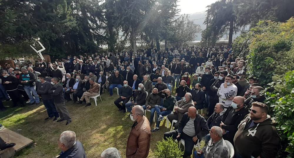 أضاف: “دعوتكم إلى هذا اللقاء استنادا إلى حقي الذي يكفله الدستور والقوانين المرعية الإجراء، في قضية لم تعد شخصية بمقدار ما أصبحت وينبغي أن تكون، هي وكثر من أمثالها، قضية رأي عام، ذلك أن تهمة التحريض على الحرب الأهلية من جانب نائب عن كتلة حزب الله البرلمانية، وبإسم كتلة الوفاء للمقاومة، ومن قبل حزب لا يؤمن بالقضاء، لا القضاء الدولي في قضية اغتيال الرئيس رفيق الحريري، ولا القضاء الوطني في قضية انفجار مرفأ بيروت. إذا هذه الشكوى من هذا التنظيم الذي لا يؤمن بالقضاء، ما هي في الواقع إلا تحريض على قتلي واغتيالي، على قاعدة الأمر لي التي يطبقها حضرة النائب وحزبه منذ مدة طويلة. وهي، هذه التهمة، تجريم على القاعدة ذاتها لبيت، موجود في هذه البلدة العريقة وحاضر في هذه المنطقة الآمنة وفي هذا الجرد الخشن، بيت مشهود له في المحافظة على السلم الأهلي والعيش المشترك في جبيل وكل الوطن وفي كل الظروف”.