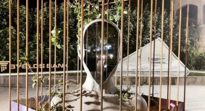 ووضع تركيب فنّي معبّر لجو خشّان وإنانا ابراهيم وحمود حسين في المكان نفسه، كناية عن رأس امرأة مع كتفَيْها، مع مرآة مكان الوجه، ووضع المجسّد في قفص حديدي كبير.