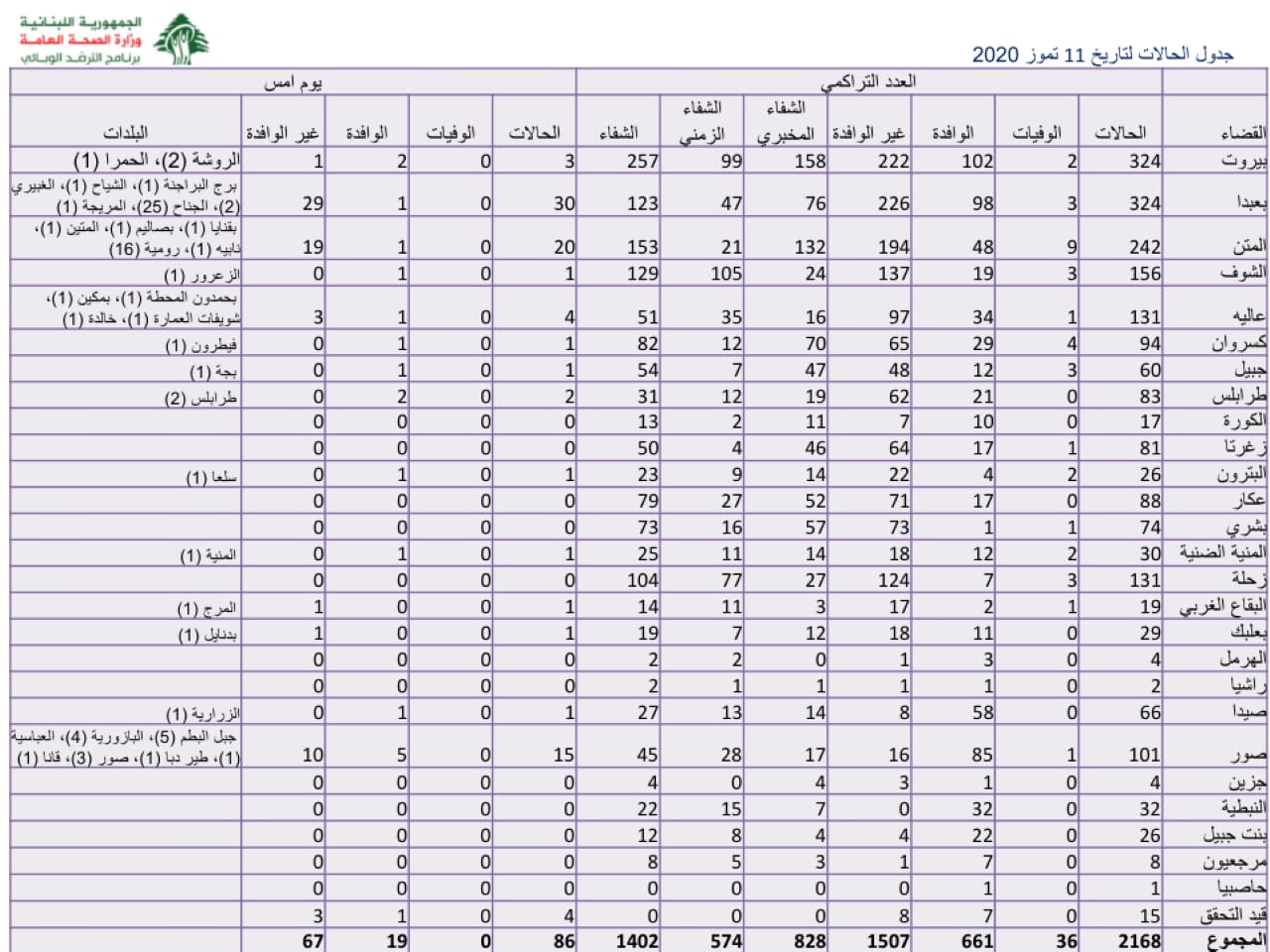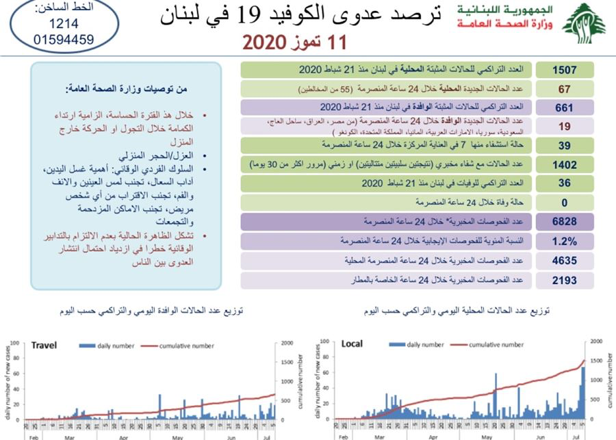 محلياتصحّةوزارة الصحة: 86 اصابة كورونا جديدة رفعت عدد الحالات المثبتة الى 2168 صحّةوزارة الصحة: 86 اصابة كورونا جديدة رفعت عدد الحالات المثبتة الى 216819:35 2020 ,July 110518 أعلنت وزارة الصحة عن تسجيل 86 إصابة جديدة بفيروس كورونا، 67 حالة من المحليين و16 حالة من الوافدين. FacebookTwitterPinterestWhatsAppTelegram الخبر السابقكاهن دخل قسم الطوارئ بسبب ألم في ركبتيه والنتيجة أتت صادمة… مستشفى الروم عزل 20 طبيباً وممرضاً!الخبر التاليرئيس بلدية بجه رستم صعيبي ينفي وجود اصابة في البلدة- إعلان - - إعلان - ترك الردالتعليق:من فضلك ادخل تعليقك اسم:*من فضلك ادخل اسمك هنا البريد الإلكتروني:*لقد أدخلت عنوان بريد إلكتروني غير صحيح!الرجاء إدخال عنوان بريدك الإلكتروني هنا الموقع: احفظ اسمي والبريد الإلكتروني وموقع الويب في هذا المتصفح للمرة الأولى التي أعلق فيها. - إعلانات - - إعلانات - الأكثر قراءةمأساة مؤلمة… ميشال جثّة داخل منزله! 11:38 2025 ,December 4 أوَّل معجزة تُسَجَّل بعد زيارة البابا ضريح مار شربل: رَنَّ هاتف الطبيب وصوتُ القديس يُعلِنُ الأعجوبة 15:24 2025 ,December 4 حادث مؤسف يطال النائب افرام قبيل زيارة الحبر الأعظم… فهل يشارك؟ 19:41 2025 ,November 29 جريمة مروّعة نفّذها سوريّان… ودعوات لضبط النفس 12:02 2025 ,December 4 المزيد- إعلانات - - إعلانات - - إعلان - - إعلان -