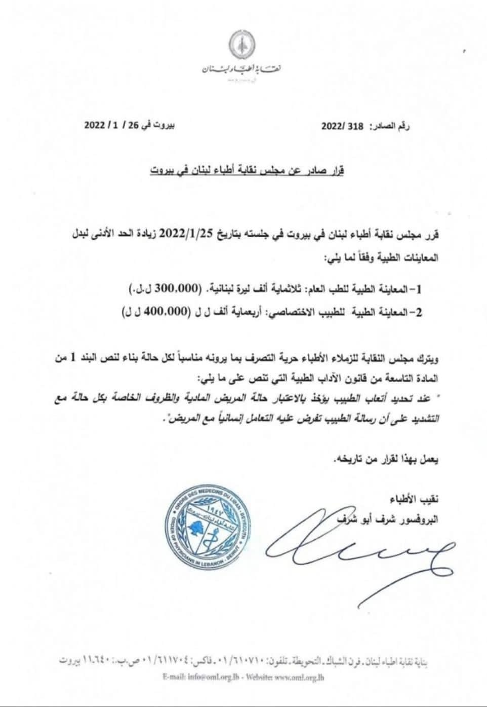 أبرز العناوينبالصورة - إليكم التسعيرة الجديدة للمعاينة الطبية صحّةبالصورة – إليكم التسعيرة الجديدة للمعاينة الطبية22:46 2022 ,January 2601366 حددت نقابة أطباء لبنان الحد الأدنى لبدل المعاينات الطبية كما يلي :300 ألف طب عام400 ألف طبيب اختصاصيكلمات مفتاحيةصحة FacebookTwitterPinterestWhatsAppTelegram الخبر السابقتذكير من وزارة الشؤون الإجتماعية للمواطنين حول البطاقة التمويليةالخبر التاليالإعلامي ريكاردو الشدياق يكشف: بهاء الحريري سيطلق مشروعه خلال أيام- إعلان - - إعلان - مقالات ذات صلة صحّةبسبب مادّة مسرطنة.. فايزر تسحب شحنات من عقارها لمعالجة ضغط الدم 18:43 2022 ,March 22 أبرز العناوينالمستشفيات الخاصة ستستمرّ في إستقبال مرضى الضمان وغسيل الكلى.. ولكن! 09:33 2022 ,March 17 أبرز العناوينمأساة جديدة: لن تصدّقوا بِمَ يُستبدل الحليب للرُّضَّع! 13:43 2022 ,March 16 ترك الردالتعليق:من فضلك ادخل تعليقك اسم:*من فضلك ادخل اسمك هنا البريد الإلكتروني:*لقد أدخلت عنوان بريد إلكتروني غير صحيح!الرجاء إدخال عنوان بريدك الإلكتروني هنا الموقع: احفظ اسمي والبريد الإلكتروني وموقع الويب في هذا المتصفح للمرة الأولى التي أعلق فيها. - إعلانات - - إعلانات - الأكثر قراءةمأساة مؤلمة… ميشال جثّة داخل منزله! 11:38 2025 ,December 4 أوَّل معجزة تُسَجَّل بعد زيارة البابا ضريح مار شربل: رَنَّ هاتف الطبيب وصوتُ القديس يُعلِنُ الأعجوبة 15:24 2025 ,December 4 حادث مؤسف يطال النائب افرام قبيل زيارة الحبر الأعظم… فهل يشارك؟ 19:41 2025 ,November 29 جريمة مروّعة نفّذها سوريّان… ودعوات لضبط النفس 12:02 2025 ,December 4 المزيد- إعلانات - - إعلانات - - إعلان - - إعلان -