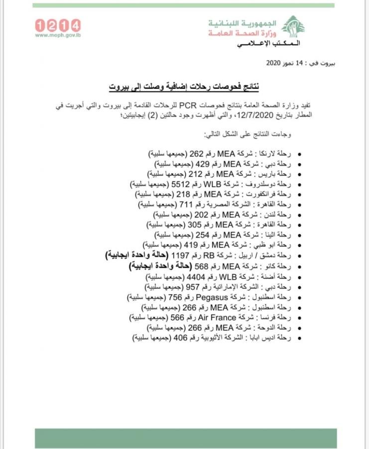 محلياتصحّةنتائج فحوص الـPCR للرحلات الآتية الى بيروت في 12 تموز صحّةنتائج فحوص الـPCR للرحلات الآتية الى بيروت في 12 تموز12:59 2020 ,July 140235 أعلنت وزارة الصحة العامة أن نتائج فحوص الـPCR للرحلات الآتية الى بيروت والتي أجريب في 12 تموز 2020 أظهرت وجود حالتين إيجابيتين. FacebookTwitterPinterestWhatsAppTelegram الخبر السابقمعلومات صحفية: مجلس الوزراء رفض استقالة بيفانيالخبر التاليالأسمر رئيساً للاتحاد العمالي من جديد- إعلان - - إعلان - ترك الردالتعليق:من فضلك ادخل تعليقك اسم:*من فضلك ادخل اسمك هنا البريد الإلكتروني:*لقد أدخلت عنوان بريد إلكتروني غير صحيح!الرجاء إدخال عنوان بريدك الإلكتروني هنا الموقع: احفظ اسمي والبريد الإلكتروني وموقع الويب في هذا المتصفح للمرة الأولى التي أعلق فيها. - إعلانات - - إعلانات - الأكثر قراءةمأساة مؤلمة… ميشال جثّة داخل منزله! 11:38 2025 ,December 4 أوَّل معجزة تُسَجَّل بعد زيارة البابا ضريح مار شربل: رَنَّ هاتف الطبيب وصوتُ القديس يُعلِنُ الأعجوبة 15:24 2025 ,December 4 حادث مؤسف يطال النائب افرام قبيل زيارة الحبر الأعظم… فهل يشارك؟ 19:41 2025 ,November 29 جريمة مروّعة نفّذها سوريّان… ودعوات لضبط النفس 12:02 2025 ,December 4 المزيد- إعلانات - - إعلانات - - إعلان - - إعلان -