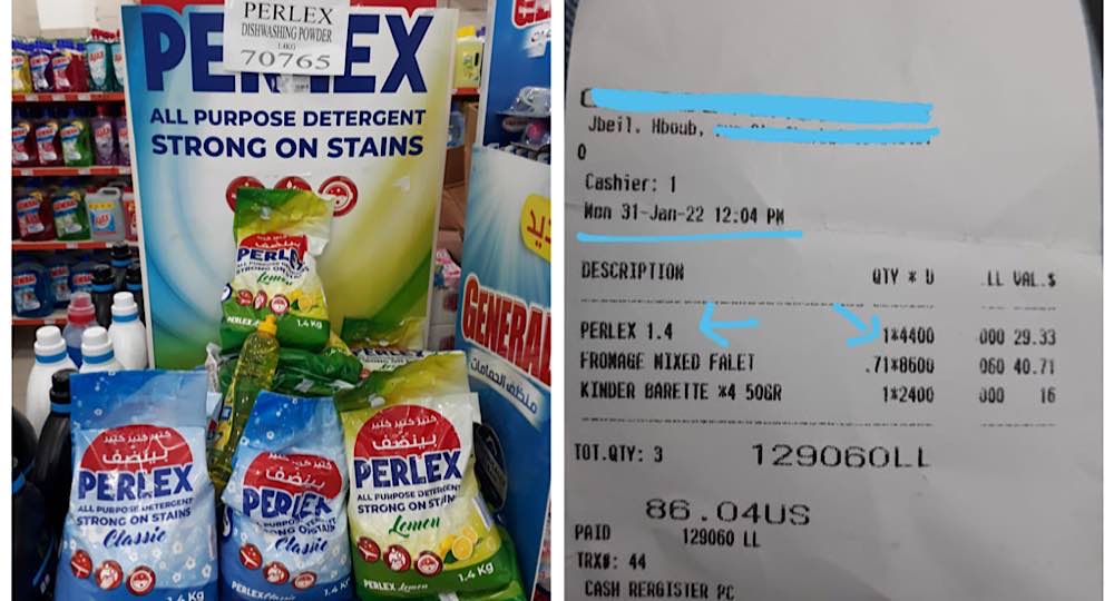 فكما تظهر الصّور المرفقة، يختلف سعر هذا المنتج حوالي ٢٧٠٠٠ ليرة بين إحدى السوبرماركات الكبرى في جبيل ومتجر صغير، وبالتاريخ نفسه.