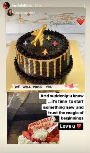 وفي التفاصيل، بعدما نشرت شقيقة ليال صورة عبر خاصية “الستوري” على إنستغرام ذكرتها فيها، أعادت ليال نشر الصورة على صفحتها الخاصة. وتظهر الصورة قالبين حلوى أحدهما مكتوب عليه: “حظًّا موفقًا ليال”، أما الثاني فوضع عليه مجسم طائرة مع عبارة “سوف نشتاق لك”، في إشارة إلى أن ليال تتجهز للسفر خارج لبنان.
