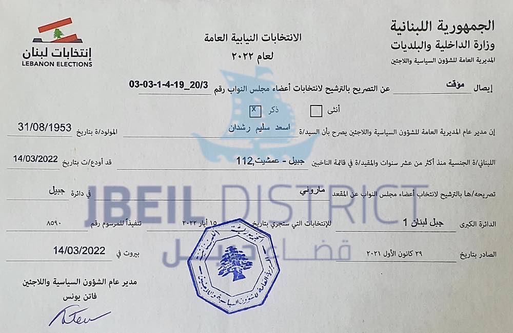 علم موقع ” قضاء جبيل ” أن إبن بلدة عمشيت الجبيلية الممثل أسعد رشدان تقدم بترشيحه رسمياً للانتخابات النيابية المقبلة عن المقعد الماروني في دائرة كسروان – جبيل.