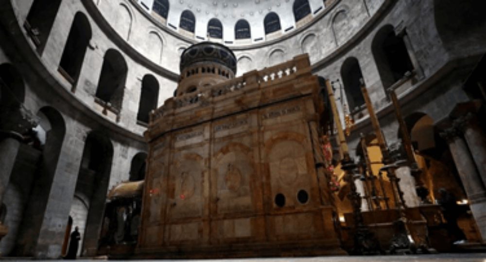 عُثر في ممر خلفي لكنيسة القيامة في القدس على لوح حجري كان محشوراً أمام حائط، تبين أنه واجهة مزخرفة لمذبح مرتفع يعود إلى العصور الوسطى.